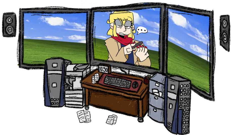Ah yes, the world's first supercomputer being able to predict the limitless outcomes the future holds, while also simultaneously spying on humans at the same time…And she gets stuck doing the bidding of an insecure, stuttering pink haired freak…Great…Just great…Even worse she may have a soft spot for him, but she likes to say it’s just pity. If you could have the perfect representation of sarcasm and I’m sick of doing this shit attitude into a person…Well this case…A computer…Moni would be that representation.Fun fact!!!